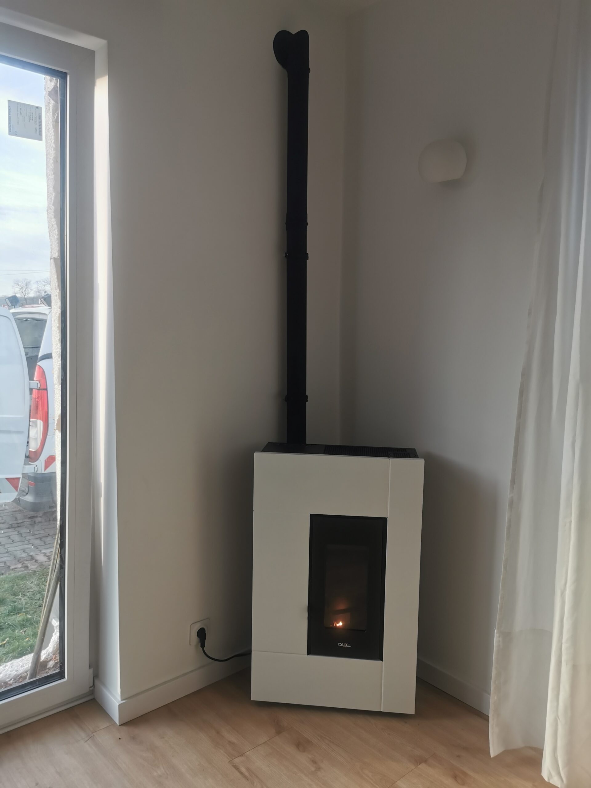Przykład działania kominka na pellet