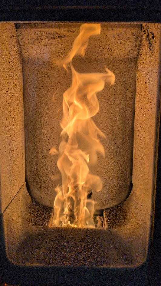 - Przez dostarczenie powietrza do komory, rozpoczyna się proces spalania pelletu.